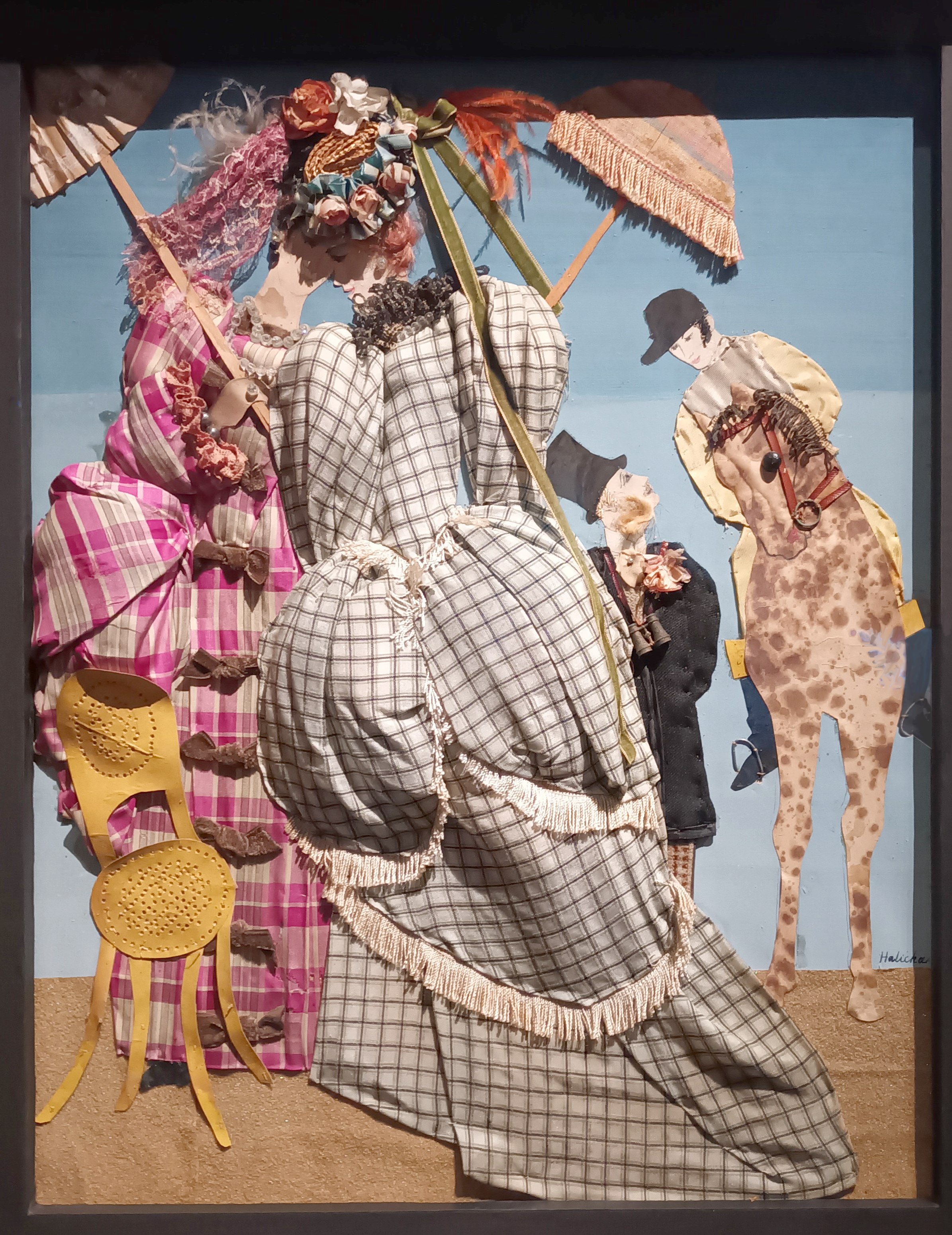 Alice Halicka, une autre artiste polonaise, arrive à Paris en 1912 et commence à peindre. Elle étudie à l’Académie Ranson et fait les portraits de personnalités comme Ernst, Braque, Foujita. Elle participe aux échanges avec les collègues hommes et femmes. Apollinaire remarque son travail au Salon des indépendants en 1914. Elle épouse Marcoussis, un peintre cubiste. Au retour de la guerre, ce dernier décide qu’il ne faut qu’un artiste dans le couple. Alice Halicka arrête de peindre, mais à partir de 1920 reprend son activité d’artiste. Elle réalise une série qu’elle appelle « Poupées à plat ». Il s’agit de collages de tissus, de broderies, de choses qu’elle trouve chez elle à l’atelier. Ses « Romances capitonnées » marchent très bien. Elle en place chez Poiret, chez Rubinstein. Il est vrai que ce n’est pas connu. Lucia Pesapone a trouvée ses œuvres chez un collectionneur privé en Pologne.