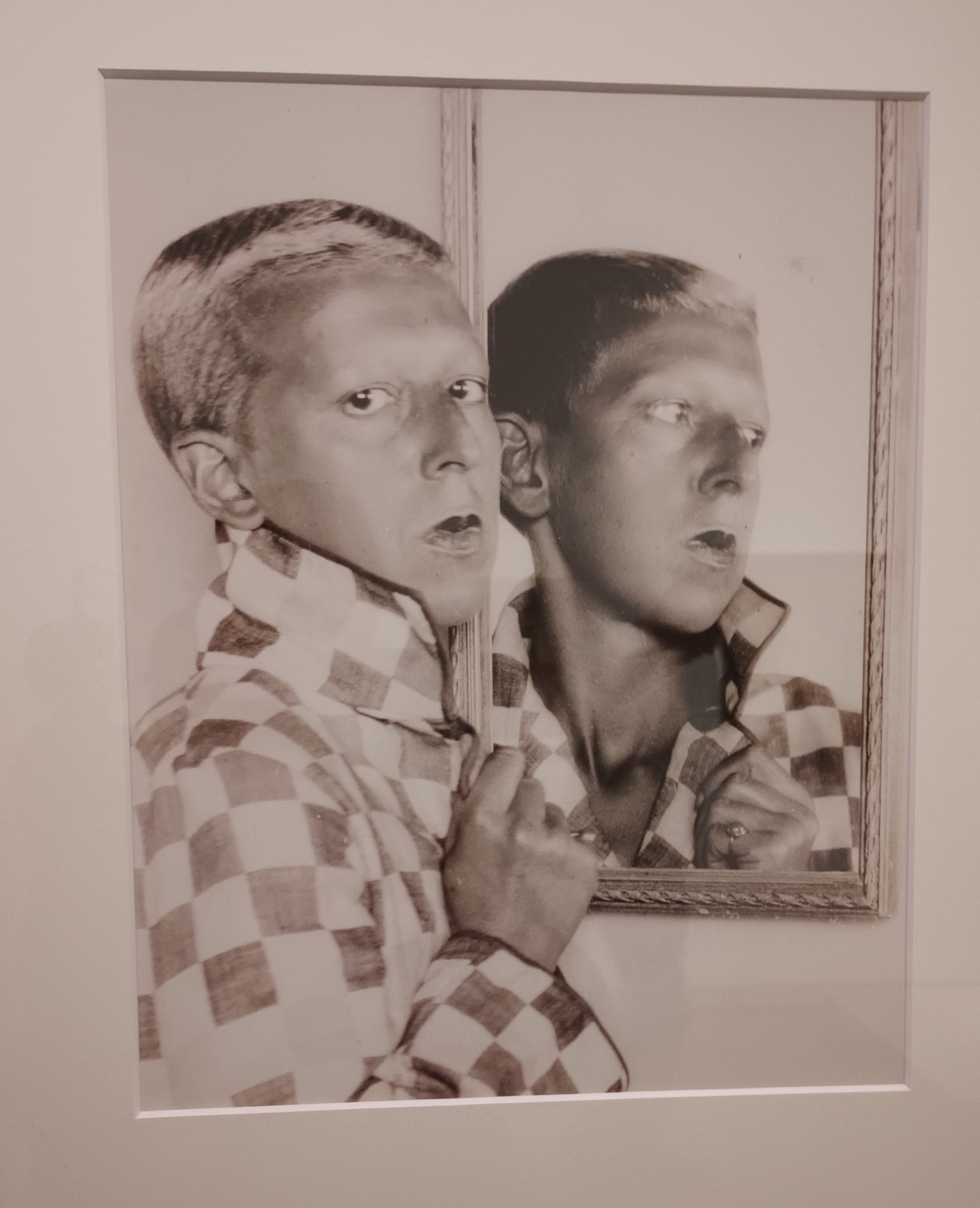 Cette réflexion très profonde autour de la notion des différentes identités possibles est creusée et vécue par d’autres artistes. Claude Cahun qui déclare dans les années 30 : « Féminin, masculin, l’autre est le seul genre qui me convienne ». Pendant toute sa vie, elle remettra en cause à travers son art la dualité (féminin, masculin). On parlerait de non binarité. Et elle se représente avec toutes les possibilité de l’appareil photographique avec sa compagne Marcelle Moore. Les deux choisissent un autre nom : Cahun née Lucie Schwob, choisit le nom de Claude pour son art. Et ce pan de lecture donné aujourd’hui à son travail est vraiment une redéfinition de l’identité de ce genre. L’autre, c’est elle qui le crée vraiment dans les années 30 et qui le signe.