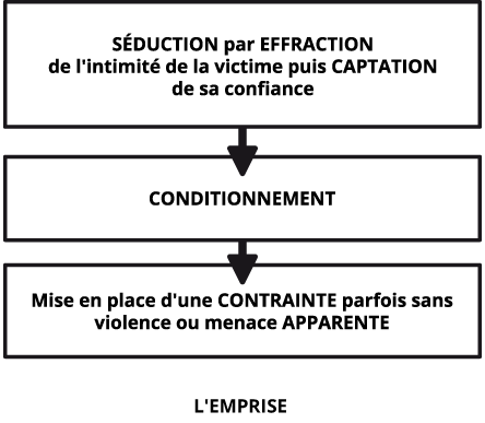 Le compagnon met en place un processus de surveillance. Et ce, bien avant le mariage ! L’autrice s’est retrouvée prisonnière, dans l’impossibilité de partir. Il est venu s’installer chez elle. Un mariage dont elle ne veut pas, mais elle ne dit rien. L’impression de se faire manipuler. Le piège se referme.